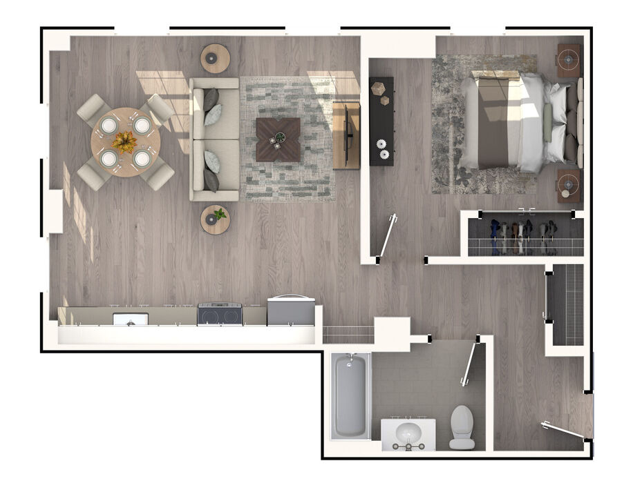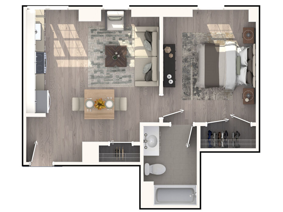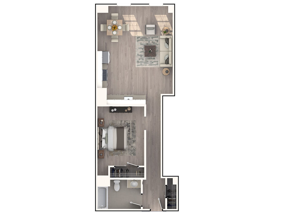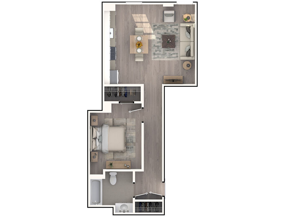 Renderings are intended only as a general reference. Features, materials, finishes and layout of units may be different than shown. For more details, ask a leasing representative about specific apartment features.